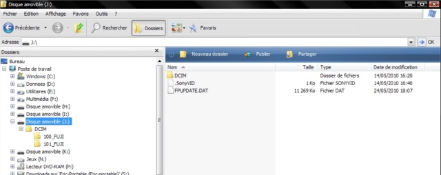 - Copier le fichier FPUPDATE.DAT dans la racine de la carte SD (carte dans un lecteur multi-carte ou dans l'APN relié pas le câble USB).